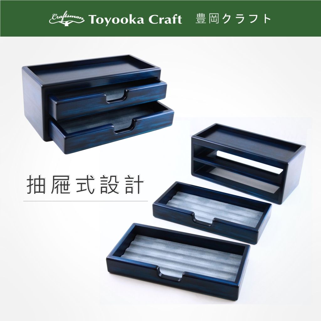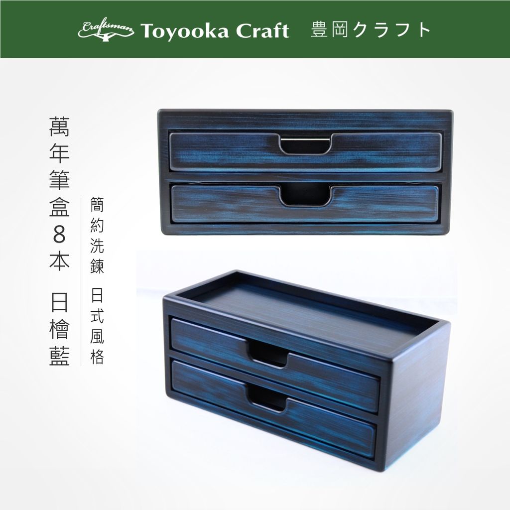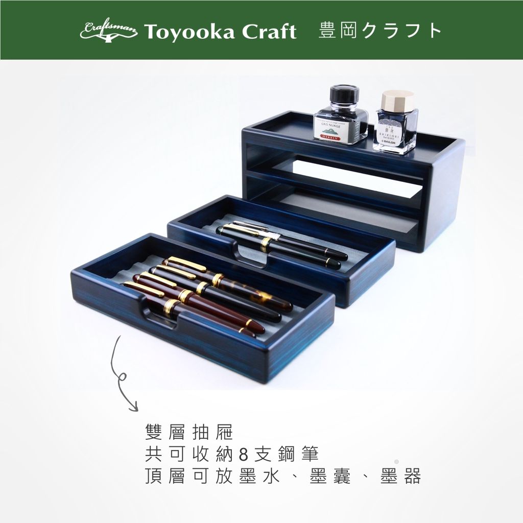 品 名:日本豊岡 Toyooka Craft 鋼筆盒8本 / 雙抽屜 (日檜藍#BL104)